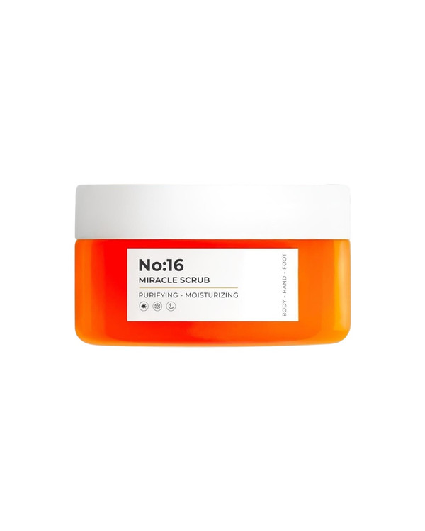 اسکراب No:16 Miracle Scrub از برند SINOZ با ترکیبی از مواد لایهبردار و آبرسان، پوست بدن، دست و پا را از سلولهای مرده پاک کرده و نرمی و لطافت را به آن بازمیگرداند.